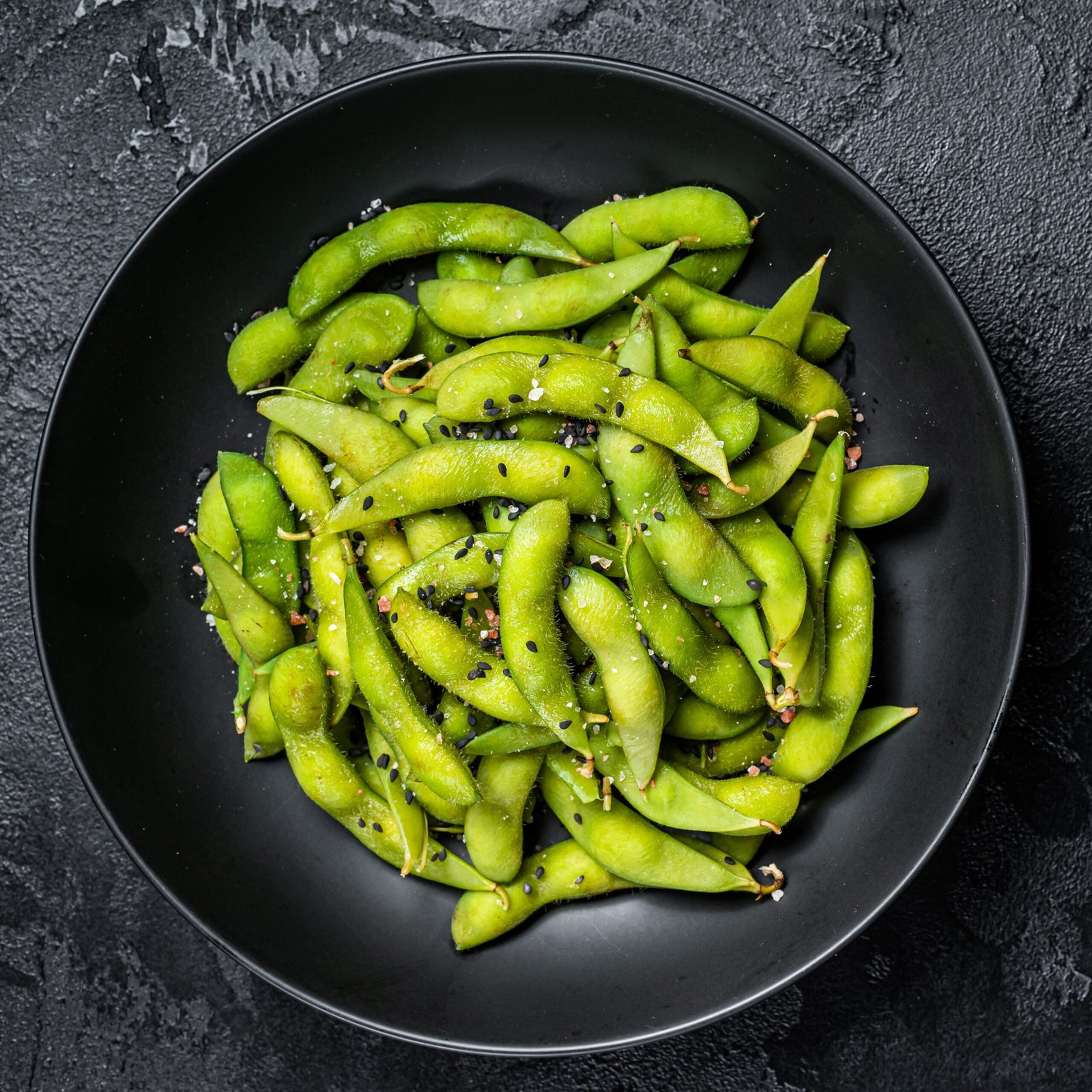 Steamed soybeans sprinkled with sea salt.